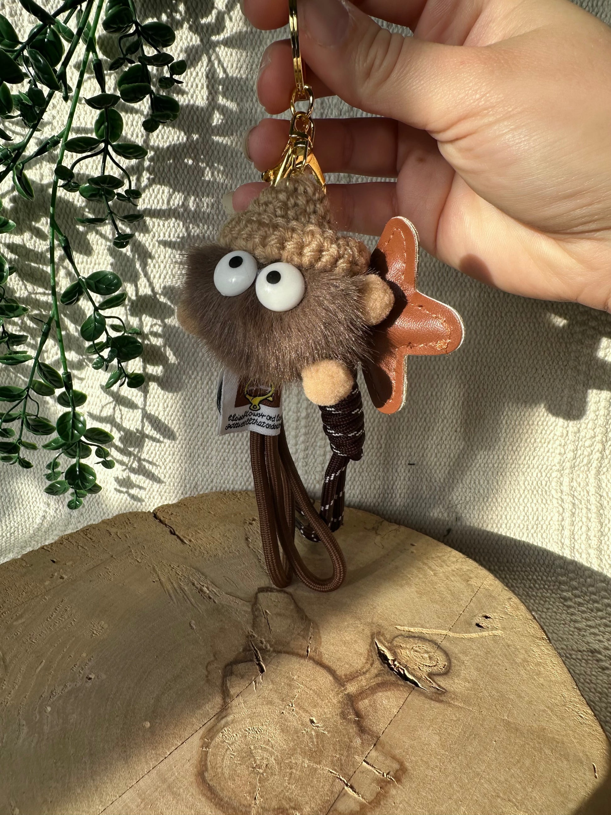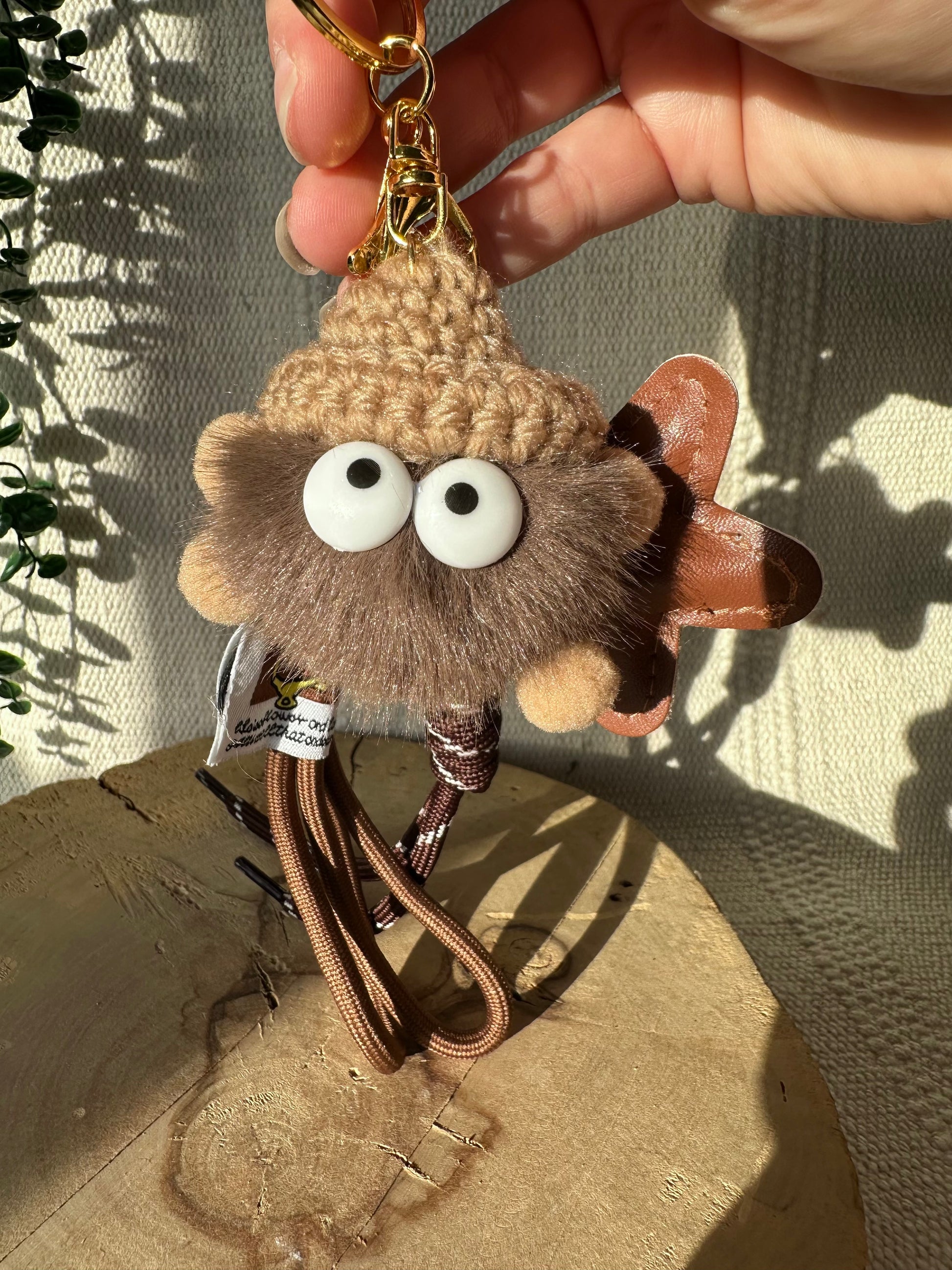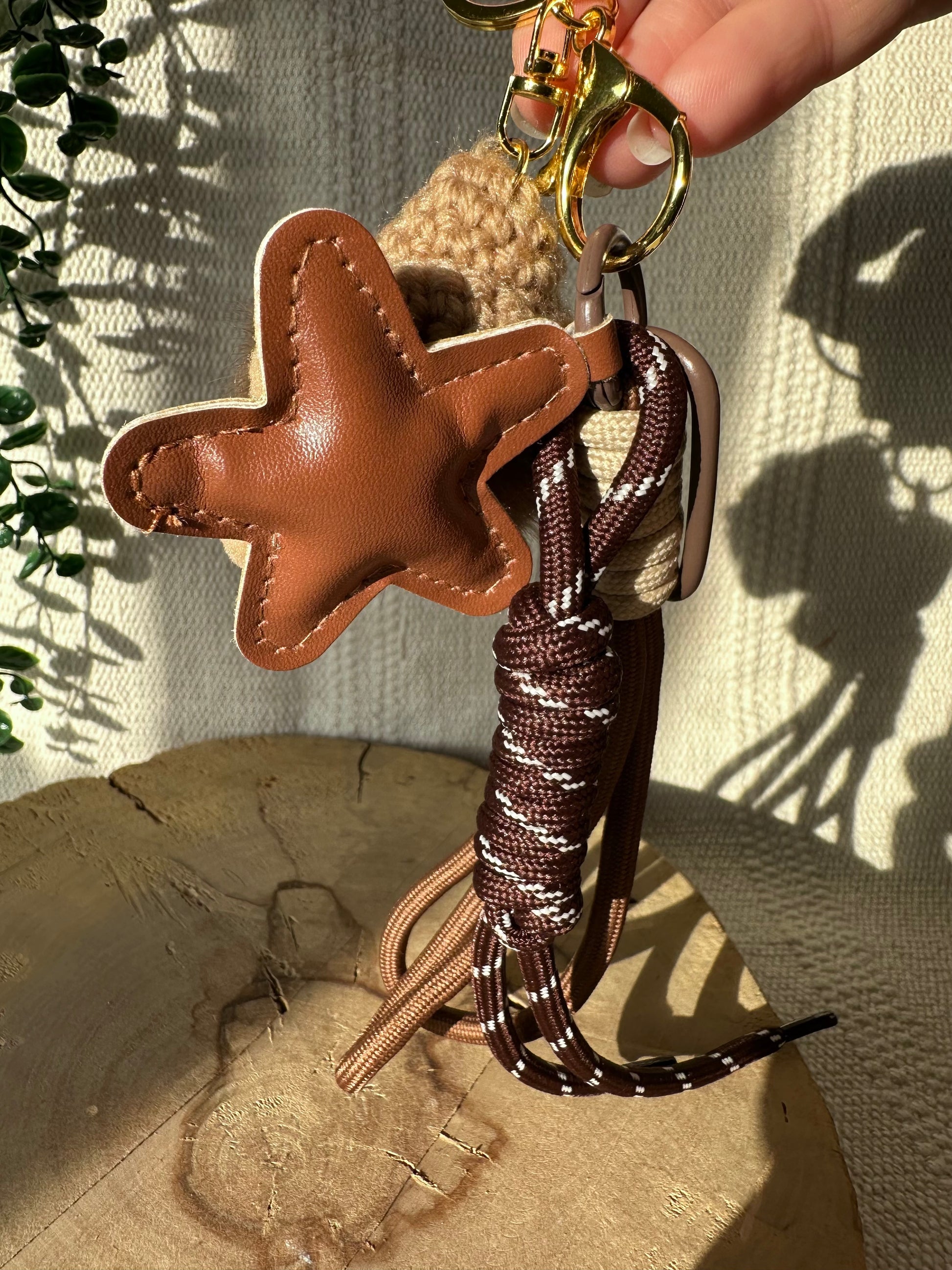 Braunes Knäul mit Stern - Schlüsselanhänger
