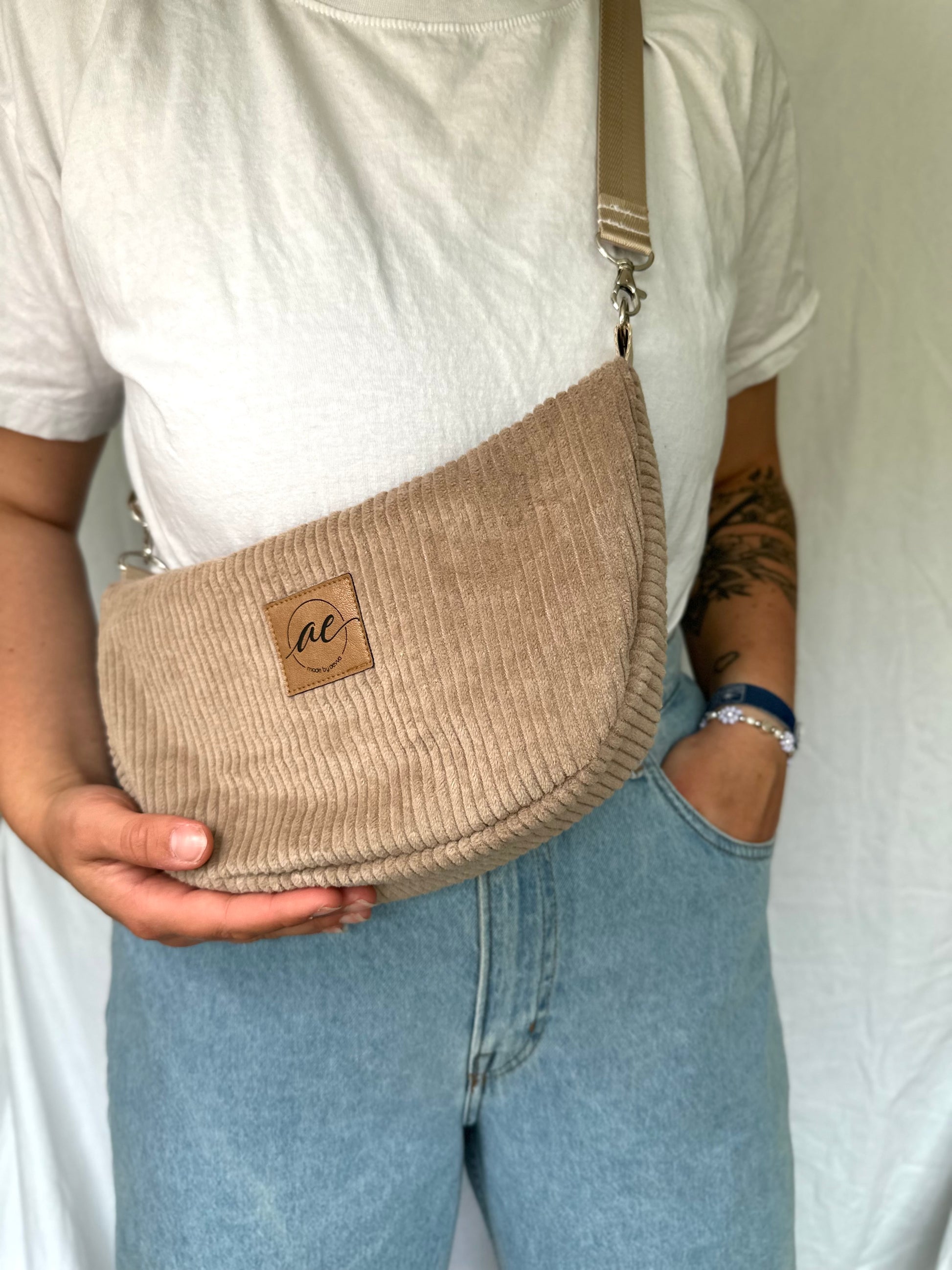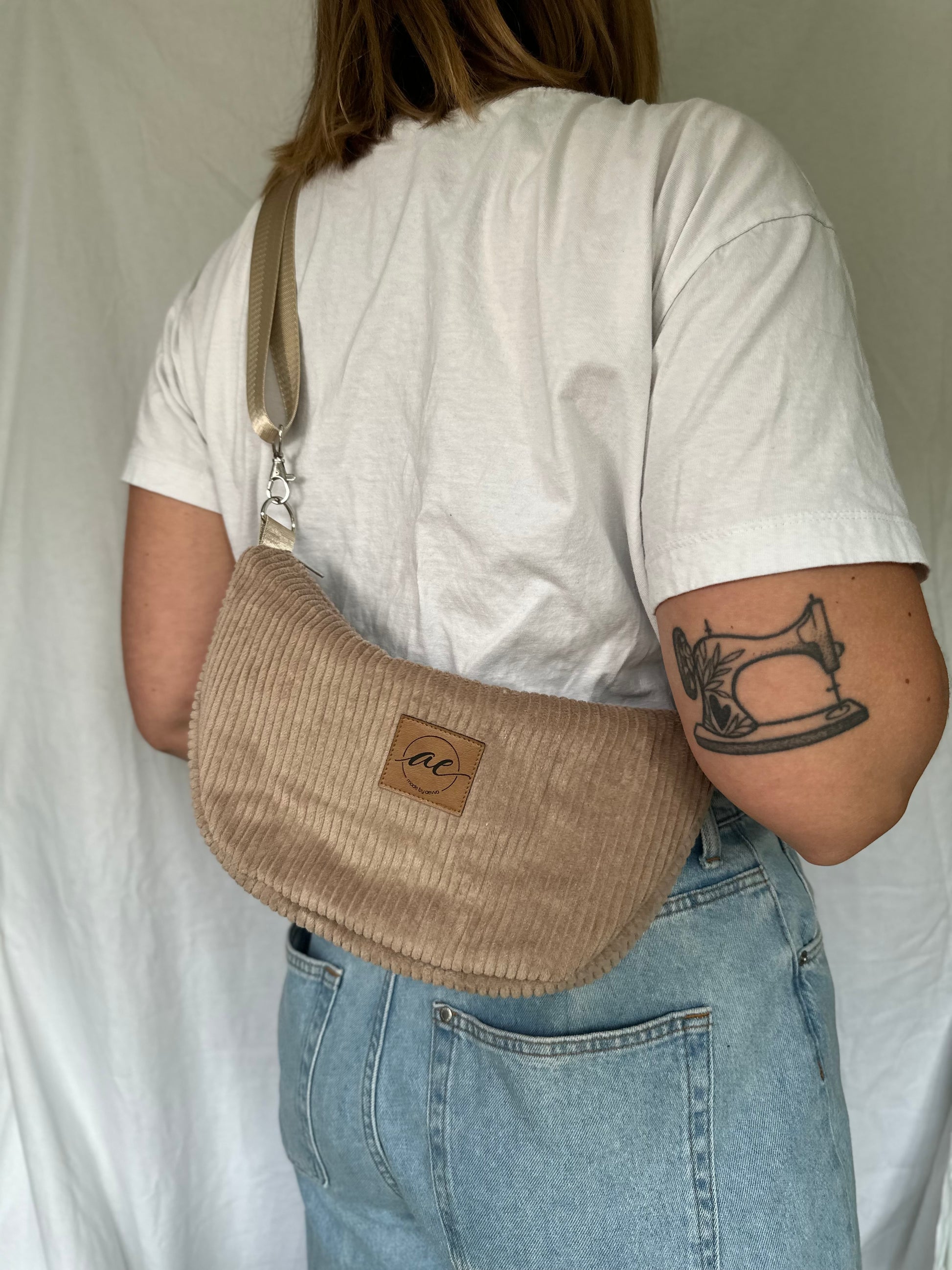 Handgemachte Half Moon Bag aus Cord in beige – Einzigartige und Stilvolle Taschen - madebyaevva