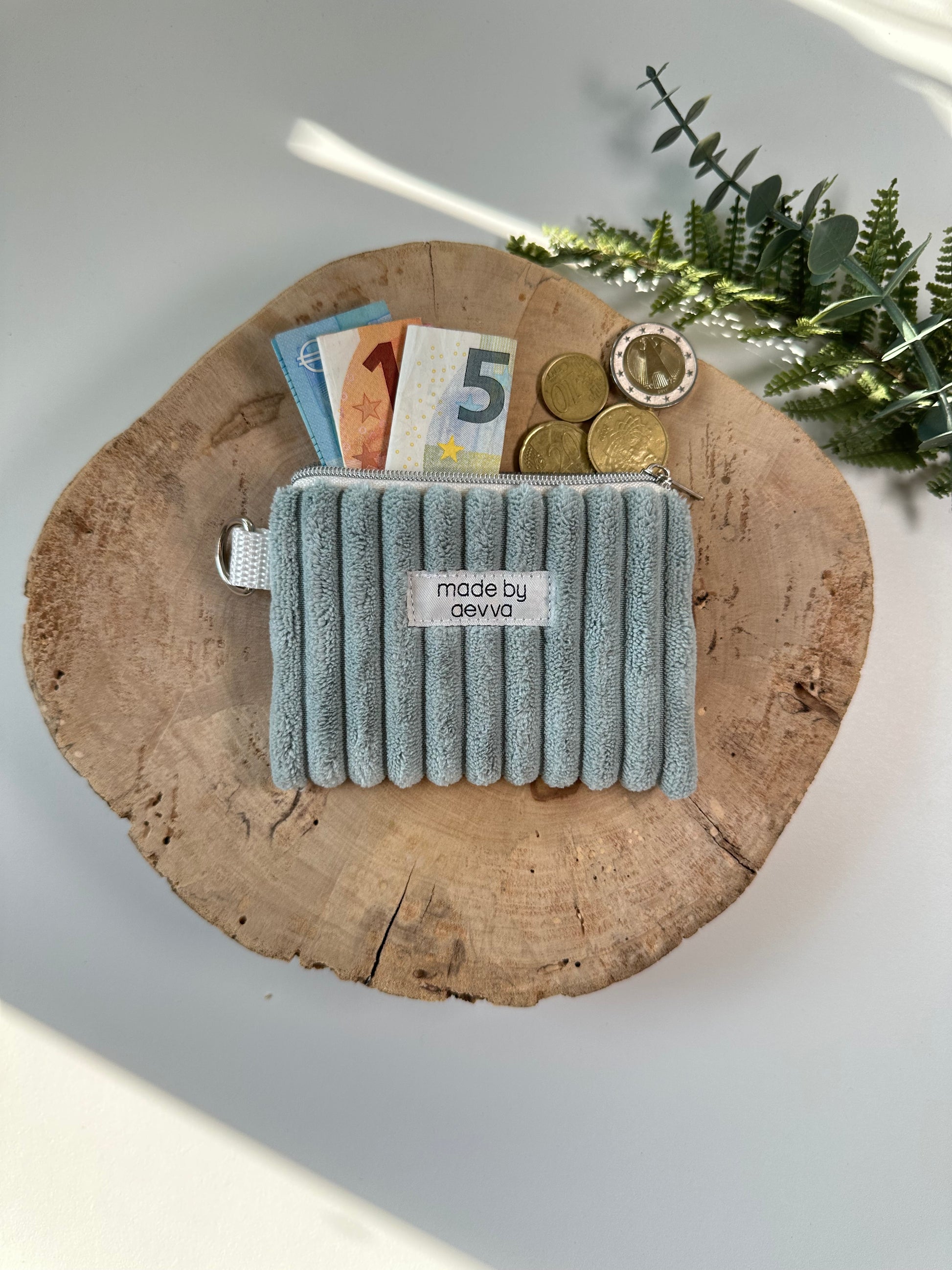 Kleiner Mini Geldbeutel aus breitem Cord in mint / madebyaevva