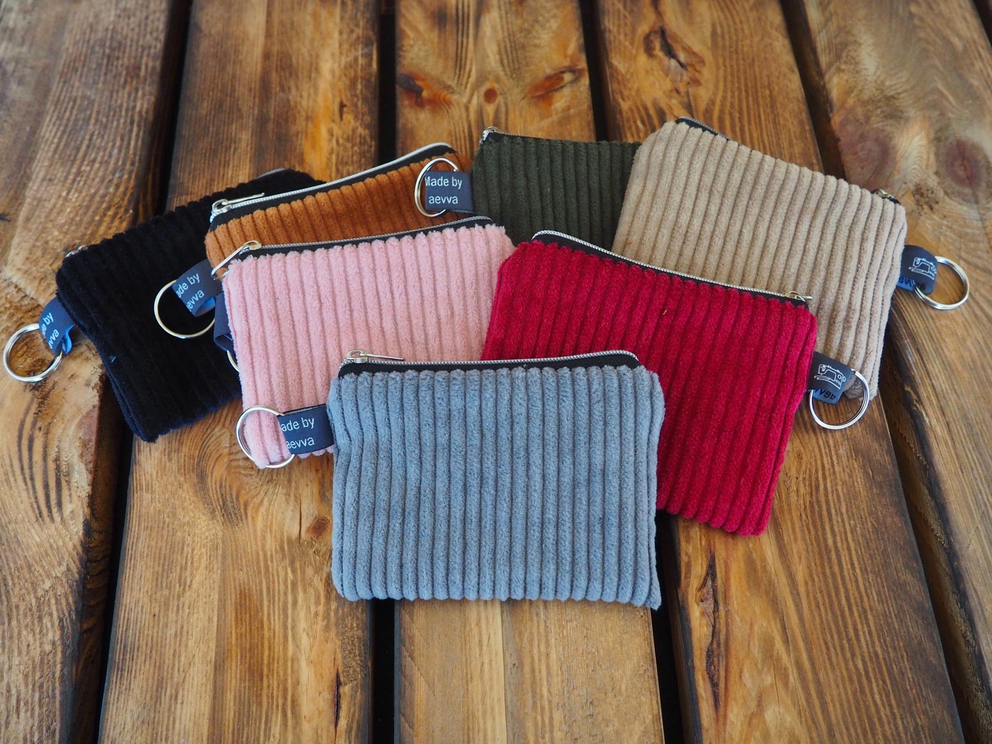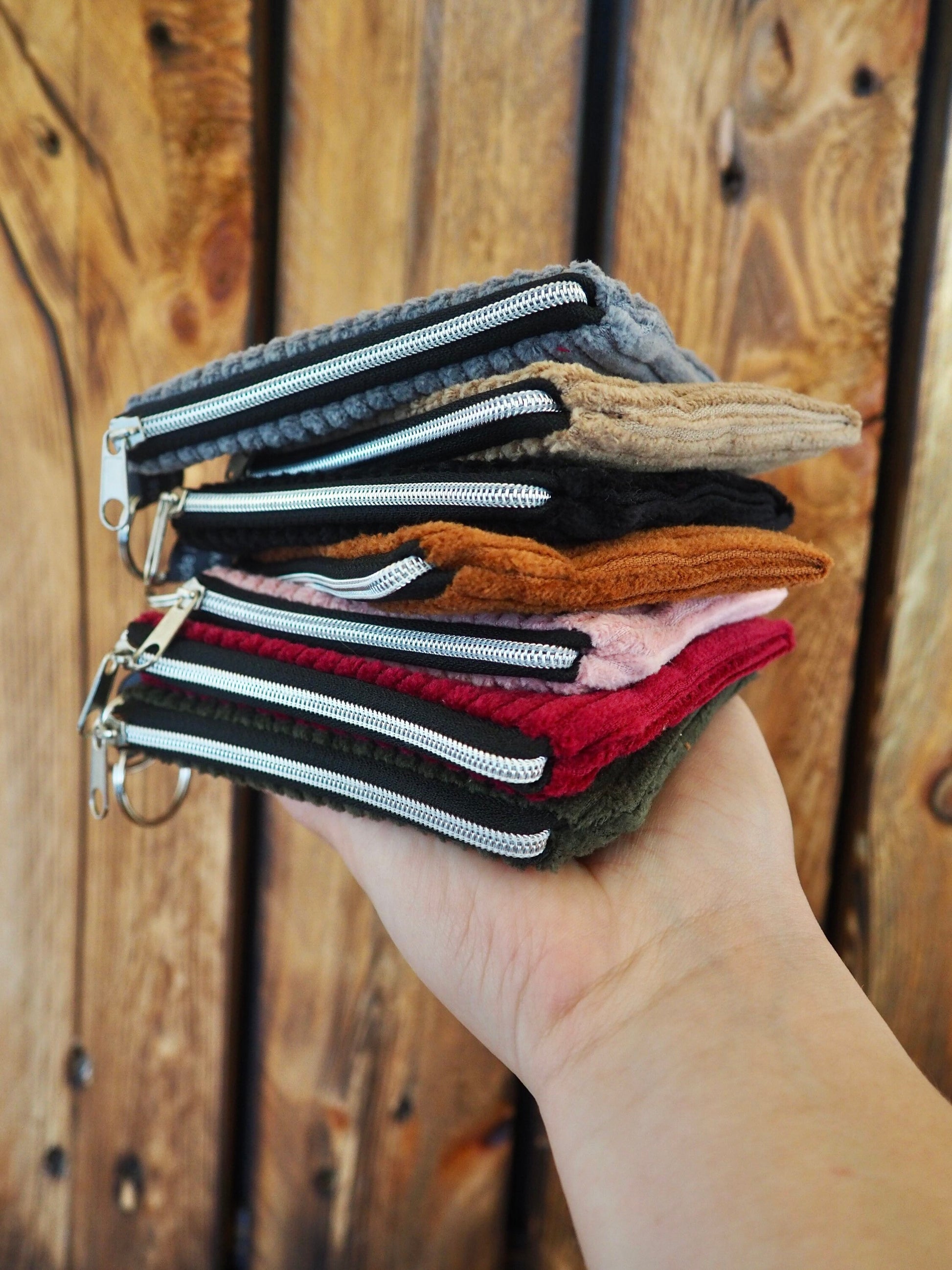 Kleiner Geldbeutel aus Cord Stoff mit Schlüsselring