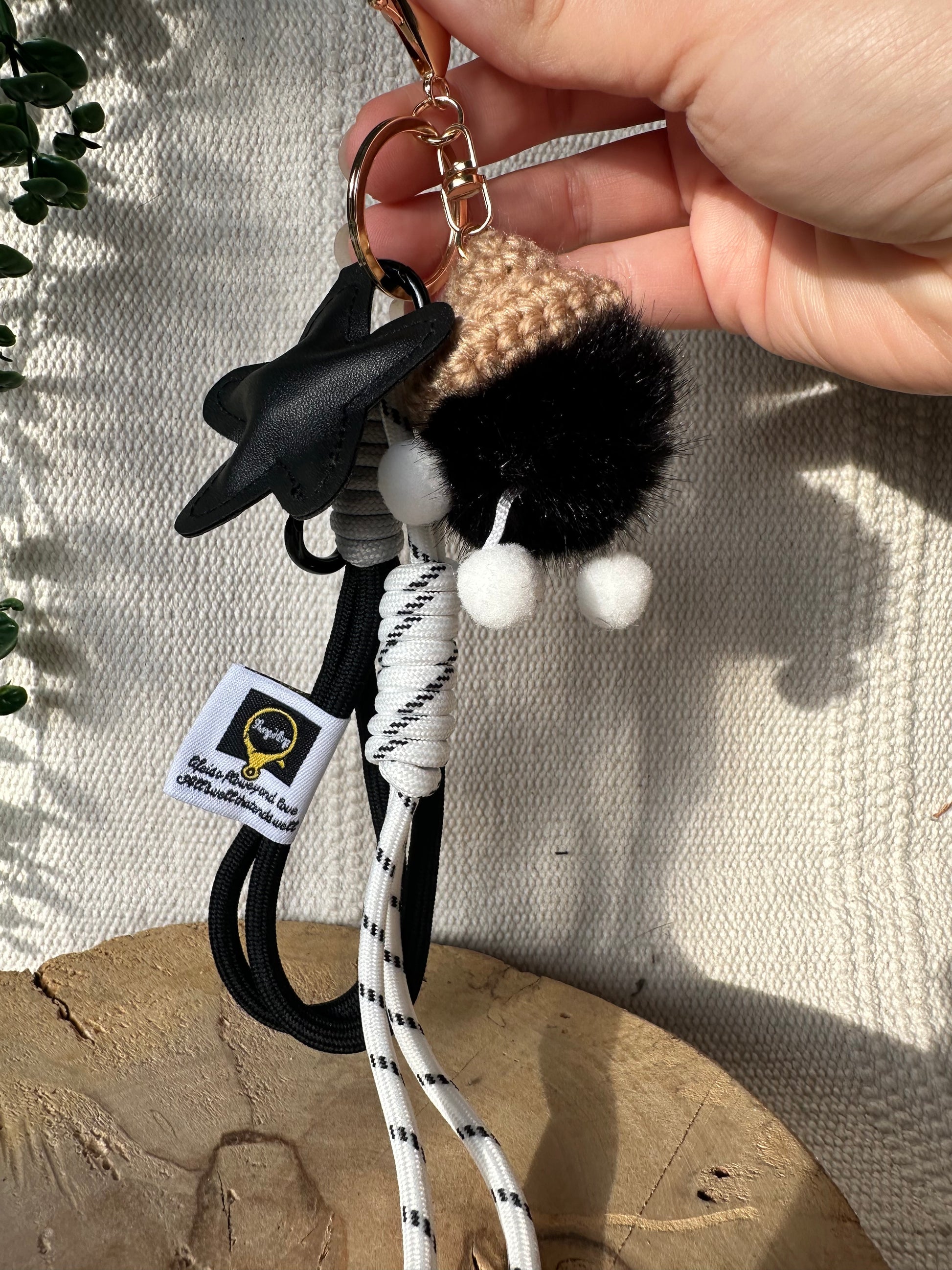 Schwarzes Knäul mit Stern - Schlüsselanhänger