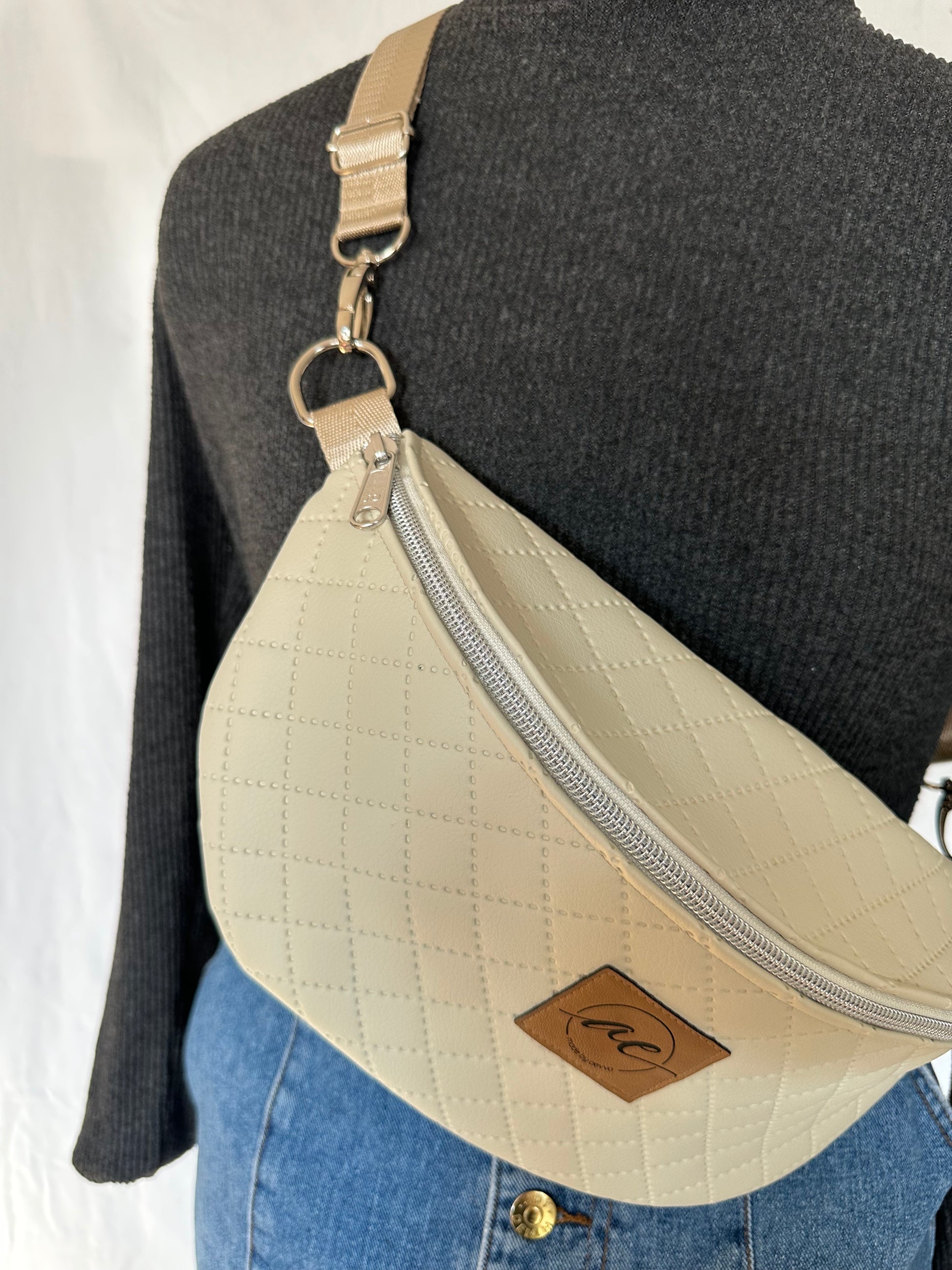 XL Bauchtasche Beiges Kunstleder mit Rauten